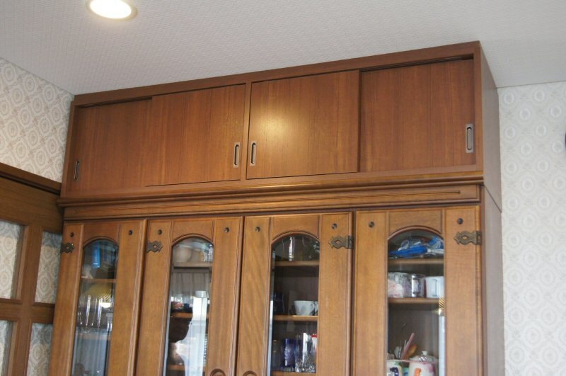 中でも、既存の食器棚にのせた戸棚は、耐震効果も兼ねた優れもの!