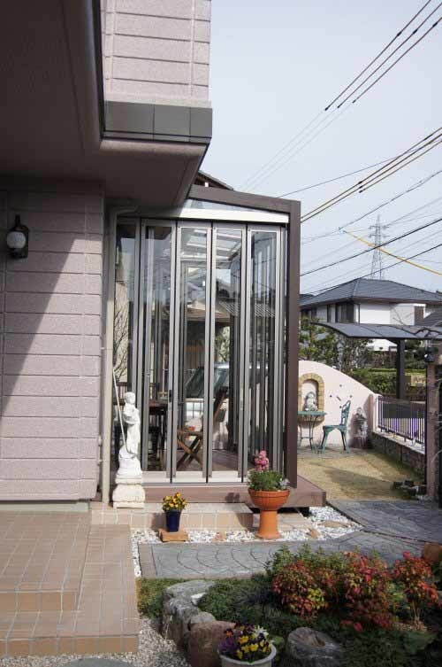 お気に入りのサンルームは、お部屋感覚。夏から秋はフルオープンでガーデン気分も味わえます。